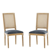 French Country Dining Chairs With Elegant Cane Backrest & Upholstered Seats Frame (Set of 2) - Slate Blue