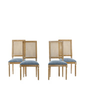 French Country Dining Chairs (Set of 4) Elegant Cane Backrest & Upholstered Seats Rustic Weathered Solid Rubberwood Frame - Slate Blue