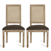 French Country Dining Chair Set With Upholstered Seats And Cane Backrest - Brown