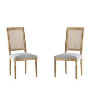 Vintage Inspired French Country Dining Chairs (Set of 2) With Cane Backrest & Upholstered Seats - Rustic Weathered