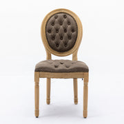 French Style Solid Wood Frame Antique Painting, Hand-Pulled Buckle Decoration Artificial Leather Dining Chair With Nailhead Trim, Wood Legs, Density Foam, Steel Spring Inner (Set of 2) - Brown