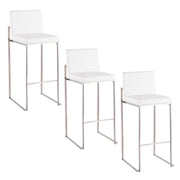 Fuji - Contemporary High Back Barstool (Set of 3) - White - Faux Leather