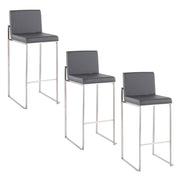 Fuji - Contemporary High Back Barstool (Set of 3) - Gray - Faux Leather