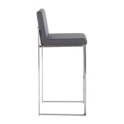 Fuji - Contemporary High Back Barstool (Set of 2) - Gray - Faux Leather