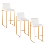 Fuji - Contemporary High Back Barstool (Set of 3) - Gold / White