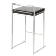 Fuji - Contemporary, Stackable Counter Stool (Set of 2) - Black - Faux Leather