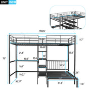 Full Over Twin Bunk Bed With Built In Desk, Shelves And Ladder - Black