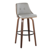 Gianna - Mid-Century Modern Fixed Height Barstool & Swivel With Round Footrest (Set of 2) - Walnut / Light Gray