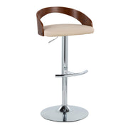 Grotto - Contemporary Adjustable Barstool With Swivel With Rounded T Footrest (Set of 2) - Chrome / Walnut / Cream