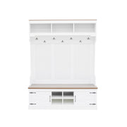 Hall Tree With Bench And Shoe Storage, 5 In 1 Entryway Organizer Cabinet With Coat Rack, 4 Shoe Cubbies & 7 Hooks - White