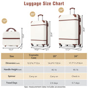 Complete Set:The luggage set of 2 pieces offers 20" carry on luggage, 24" medium checked luggage and 1 portable cosmetic case, can be nested together for easy storage.