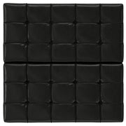 - Upholstered in a durable Midnight Black Vegan Faux Leather with stitched tufting detail.