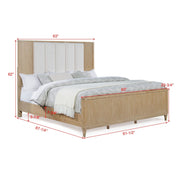 King Size Bed Paneled High Headboard - Brown / Natural Wood / White