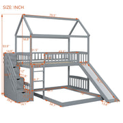 Twin Over Full Bunk Bed With Slide, House Bed With Slide - Gray