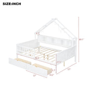 House Style Full Size Platform Bed With LED Lights, Storage Shelves, Drawers, And Guardrail - White