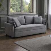 - Functional Design: It features removable back cushions for added flexibility and convenience, along with four matching toss pillows that can be used as sleeping pillows when converted into a bed.