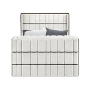 Isaiah - Queen Bed With 50" TV Lift LED, Speakers And Fireplace - White / Black