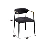 - Elegant Color Scheme: The side chair features a sophisticated dual-tone design with sleek black upholstery and legs. Gold accents on the armrests add a luxurious touch, making it a stylish addition to any dining area.