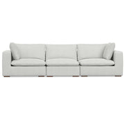- The square throw pillows and loose, reversible, 7.5-inch-thick back cushions are stuffed with a combination of feather and fiber filling for a softer feel, while the armrests are covered in thick foam padding for a comfy seating experience.