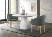 Jasper - 3 Piece Round Dining Table Set With Gray Barrel Chairs (Set of 3) - White