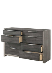 - Storage Capacity: The Jehoram Gray Finish Dresser features 8 spacious storage drawers. The top two drawers measure 27"L x 12"W x 3"H, while the bottom two drawers are slightly deeper at 27"L x 12"W x 5"H.
