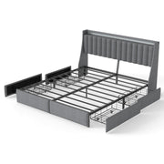 King Upholstered Bed Frame With 4 Storage Drawers, RGB LED Lights & USB / Type-C Charging Station, No Box Spring Needed - Gray