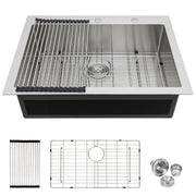 Kitchen Sink Drop In 16 Gauge Stainless Steel Single Bowl Topmount - Black