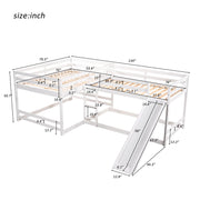 Full and Size L-Shaped Bunk Bed with Slide and Short Ladder,