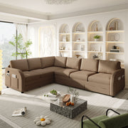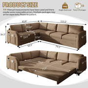 L-Shaped Oversize Convertible Sleeper Sofa With Pull Out Bed, Side Pocket & USB Port - Brown