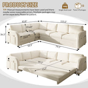 L-Shaped Oversize Convertible Sleeper Sofa With Pull Out Bed, Side Pocket & USB Port - Beige / White