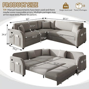 L-Shaped Oversize Convertible Sleeper Sofa Couch With Pull Out Bed, Side Pocket & USB Port For Living Room - Light Gray