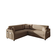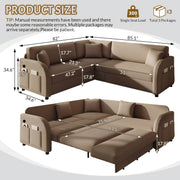 L-Shaped Oversize Convertible Sleeper Sofa Couch With Pull Out Bed, Side Pocket & USB Port For Living Room - Brown