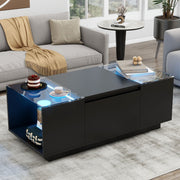 LED Coffee Table, Modern Center Table, Coffee Table With Open Storage Compartment And 2 Hidden Drawers For Living Room - Black