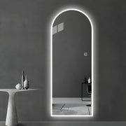 LED Full Length Wall Mirror With Symmetrical Arch Design, Dimmable 3 Color Temperature Lighting - Silver