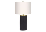 - Stylish Design: This 24" table lamp features a ribbed black concrete cylinder base with gold metal accents and an ivory linen drum shade.