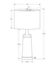 - Dimensions: The lamp measures 14 inches in length, 14 inches in width, and 27.5 inches in height. Its base is 5.75 inches in length and width, while the shade is 14 inches in length and width, with a height of 10 inches.