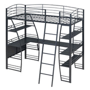Full Size Loft Bed With 4 Layers Of Shelves And L-Shaped Desk, Frame With A Set Of Sockets, USB Ports And Wireless Charging - Black