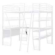 Full Size Loft Bed With 4 Layers Of Shelves And L-Shaped Desk, Frame With A Set Of Sockets, USB Ports And And Wireless Charging - White