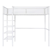 Twin Size Loft Bed With 4 Tier Shelves And Storage - White