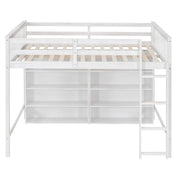 Full Size Loft Bed With 8 Open Storage Shelves And Built In Ladder - White