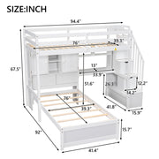 Twin Over Twin Loft Bed With Built In Desk And Staircase - White