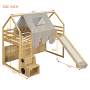 Twin Size Loft Bed With House Shaped Frame And Tent - Natural / Beige