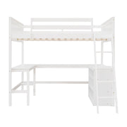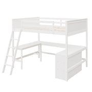 Full Size Loft Bed With Shelves With Desk - White