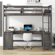 Full Size Loft Bed & U-Shaped Desk, Drawers, And Storage Shelves - Antique Brown