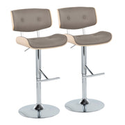 Lombardi - Contemporary Adjustable Barstool With Swivel With Straight T Footrest (Set of 2) - Chrome / Natural / Light Gray