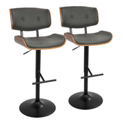 Lombardi - Mid-Century Modern Adjustable Barstool With Swivel (Set of 2) - Walnut / Gray