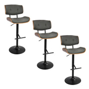 Lombardi - Mid-Century Modern Adjustable Barstool With Swivel With Straight T Footrest (Set of 3) - Black / Walnut / Gray