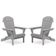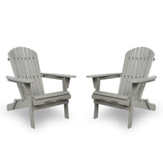 Classic Embossed Grain Adirondack Chair (Set of 2) Solid Cedar Wood Folding Outdoor Lounge Patio Chair - Gray