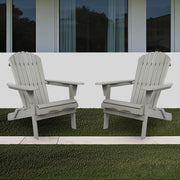 Solid Cedar Wood Lounge Patio Chair (Set of 2) With Embossed Grain Design Folding Adirondack Chair For Outdoor Garden - White
