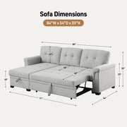 Lucca - Reversible Sleeper Sectional Sofa With Storage Chaise - Light Gray